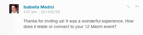Click #1850charla 2.28.14 to get the custom Twitter timeline for this 2/28/14 performance of What’s on [My] Mind?